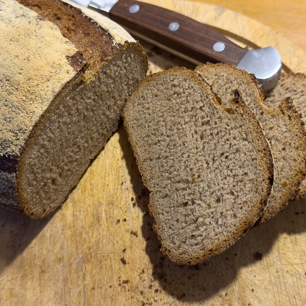 In den auf 270º vorgeheizten Ofen einschießen, ordentlich beschwaden. Die Temperatur auf 220º reduzieren und ca. 1 Stunde backen.